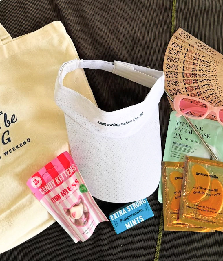 Get ready to turn heads with these personalized white visors, the perfect accessory for your hen party! Designed for comfort and style, each visor can be custom embroidered with names, fun messages, or quirky designs to make every guest feel extra special. Whether you’re lounging by the pool, taking group photos, or enjoying an outdoor activity, these visors are the ideal way to keep cool and show off your hen do spirit. Lightweight, breathable, and made for fun – these visors are sure to make your celebration even more unforgettable!